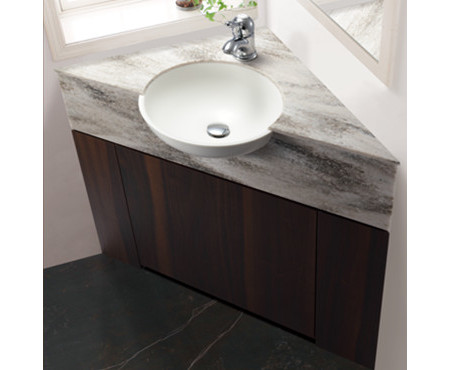 コーナーのデッドスペースを有効活用できる三角形のコーリアン®製カウンターです。玄関や廊下におすすめです。